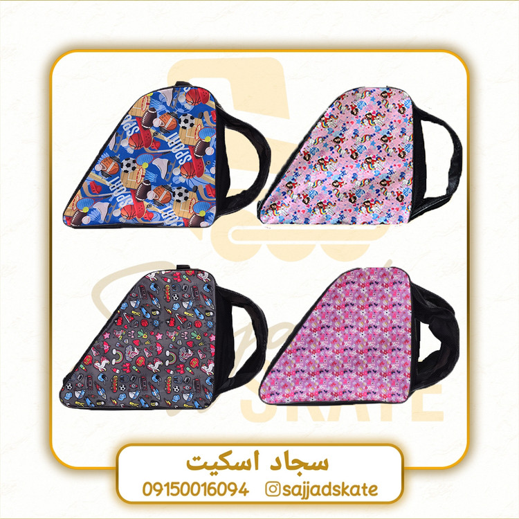 کیف اسکیت طرح دار کیفیت عالی رویه برزنتی زیپ ۱۰ دارای محفظه جداگانه برای قرار گیری کلاه اسکیت قابل شست و شو دارای ۲ بند های برزنتی بسیار محکم برای جا بهجایی کیف