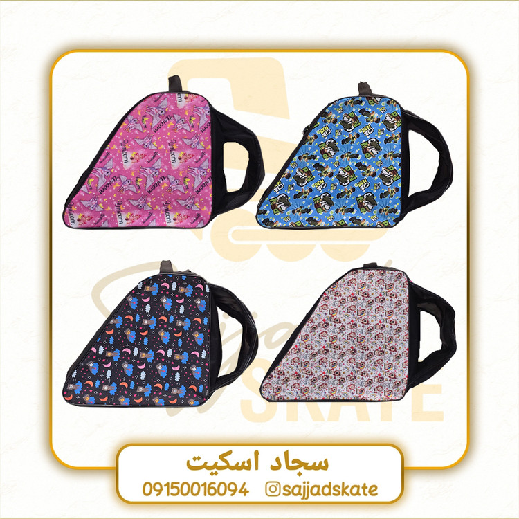 کیف اسکیت طرح دار کیفیت عالی رویه برزنتی زیپ ۱۰ دارای محفظه جداگانه برای قرار گیری کلاه اسکیت قابل شست و شو دارای ۲ بند های برزنتی بسیار محکم برای جا بهجایی کیف