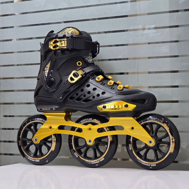 کفش اسکیت سیتی ران مدل راسل ROSELLE.این کفش اسکیت دارای بوت هارد با کیفیت بسیار بالا میباشد .دارای جوراب جدا شونده و قابل شستشو هست .تیغه این اسکیت از جنس آلومینیوم باسایز حداکثر 125mm.دراین اسکیت از چرخ 125mmبا مقاومت 85آلیاژ استفاده شده است .بلبرینگ این اسکیت ilq9 استفاده شده است .